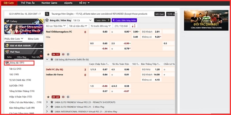 - Cược hiệp 1 và toàn trận: Người chơi có thể chọn cược vào các kèo chỉ trong hiệp 1 hoặc kết quả chung cuộc của trận đấu. Hình thức này tạo ra sự linh hoạt và tăng cơ hội chiến thắng cho cược thủ khi tham gia cá cược bóng đá trên Dafabet.